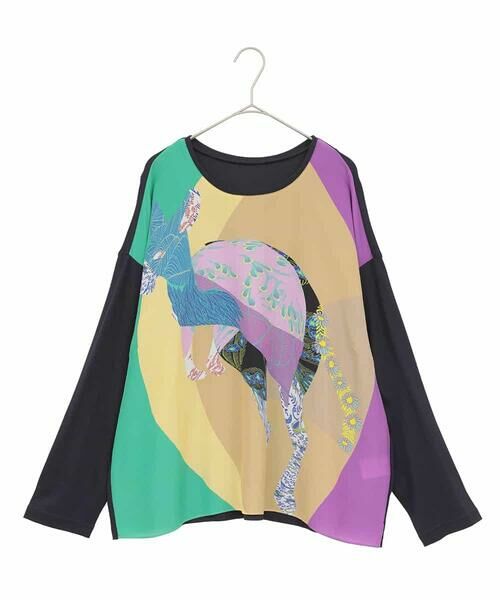 HIROKO BIS GRANDE / ヒロコビス グランデ カットソー | 【大きいサイズ】デシンジョイントアートプリントプルオーバー /洗える(ネイビー)