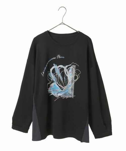 HIROKO BIS GRANDE / ヒロコビス グランデ カットソー | 【大きいサイズ】グラフィカルモチーフデザインスウェット /洗える(ベージュ)
