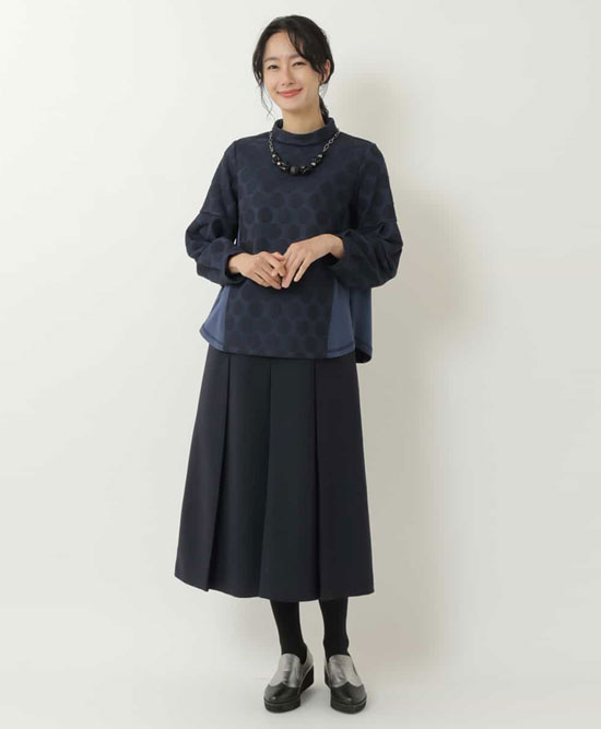 タウンコーデからフォーマルなスタイルまで幅広く活躍するスカートです。ヒップ下にプリーツを入れることで、お腹周りはすっきりとバランスの良い着こなしに。また、後ろは中心にプリーツを入れない事で、座っても形が崩れないよう工夫されています。バッグウエストのみゴムを入れた楽な着用感もポイント。着やすさとデザイン性を兼ね備えた嬉しいスカートです。同シリーズでお作りしたパンツ【RLLAQ21290】もございます。※裏地付き