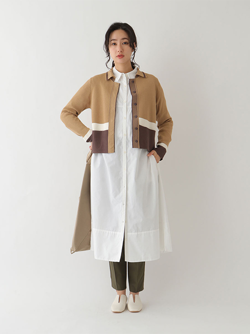 さらっと一枚で着られるリラクシーな着用感ながら存在感のあるエレガントな雰囲気を演出してくれるデザインワンピース。シンプルなボタンシャツに胸元のギャザー切り替えをポイントにした上品なフレア感が魅力的な一枚です。ワイドシルエットのトレンド感のあるフォルムに袖口のロングカフスや裾のサイドスリットで抜け感をプラス。エフォートレスでエレガントな着こなしを叶えてくれるおすすめの着映えワンピースです。同じテキスタイルのブラウス【RMBDS62210】もおすすめ。