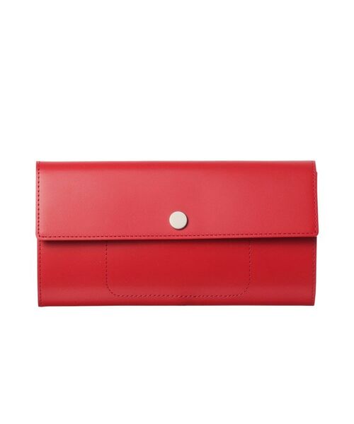 一度スナップボタンを外すと、お札、カード、小銭がすべて取り出せるスマートな所作を叶える長財布。