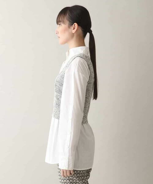 色を掛け合わせて編み上げたオリジナルのメランジニットビスチェ。ざっくりとしたミドルゲージのボリューム感がありながらも、短丈のコンパクトシルエットでスマートに着こなせます。コーディネートに一枚加えるだけでトレンドをおさえたスタイリングに。シンプルなシャツと合わせたり、同素材のカーディガン【RSSEB05430】 とセットアップのアレンジもおすすめです。model:H170 B77 W58 H85 着用サイズ:M