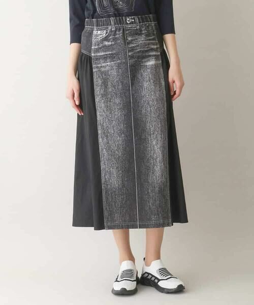 HIROKO KOSHINO / ヒロココシノ ロング・マキシ丈スカート | 異素材ジョイント3Dデニムスカート/日本製/洗える(ブラック)