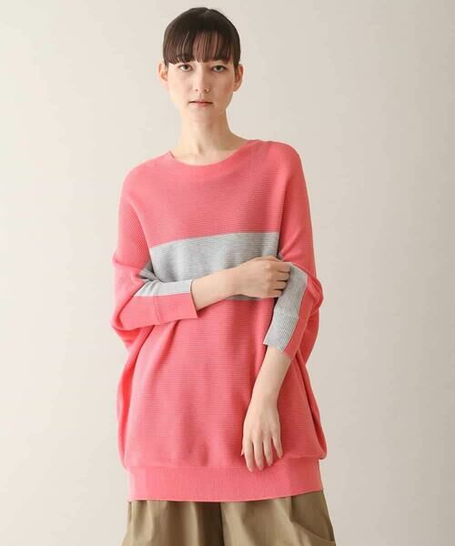 袖口から身頃まで続く配色ラインがコーディネートに映えるデザインニット◆ デザイン・おすすめポイント ◆落ち感のあるゆったりとしたドルマンシルエットがこなれ感のあるひと品。そのままの丈で着用するのはもちろん、裾をブラウジングしたスタイルアレンジもお楽しみいただけます。ホールガーメントならではの縫い目のないストレスフリーな着心地も魅力のポイント。コントラストを効かせたカラーリングが着映えを叶え、印象的なスタイリングに仕上げてくれるおすすめの一枚です。model:H170 B77 W58 H85 着用サイズ:M◆ 素材 ◆コットン、ポリエステル混合のさっぱりとした生地で春夏シーズンにも快適に着用できます。ガーター編みで表現した立体的な表面感も魅力的。