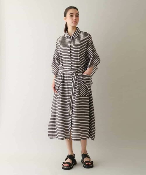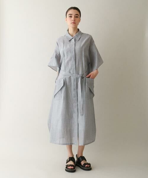 きちんと感のあるシャツディテールとナチュラルな素材で優しい雰囲気に仕上げた一着。袖先から続く広めのサイドヨークがひらりと靡くエレガントなフレアが特徴的です。ヒロコならではの折テクニックを効かせたポケットアクセントにも注目。共布ベルト付きでスタイルアレンジが出来るのも嬉しいポイントです。同素材で仕立たシャツ【RHBGB26630】 もおすすめ。