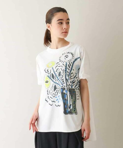 大胆なモチーフと配色が目を惹くオリジナルデザインがアクセント。さらりとしたジャージー生地とハリのあるブラウス生地をMIXさせたトレンド感ある仕立てです。襟周りや袖口のツイストしたディテールが個性的なこだわりポイント。テールロングヘムのゆったりとしたシルエットでスタイリッシュに演出してくれるおすすめのアイテムです。※バックボタン