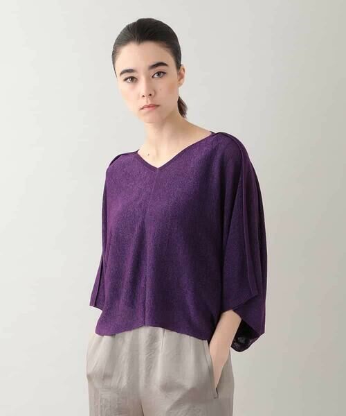 ゆとりのあるサイズと短丈のバランス良いフォルムが魅力的なひと品。ショルダー部分に立体感のある切り替えを施し、さらりと纏うだけで華やかに着映えします。女性らしいVネックとシャープなボートネックを楽しめる前後2WAYデザインもポイント。