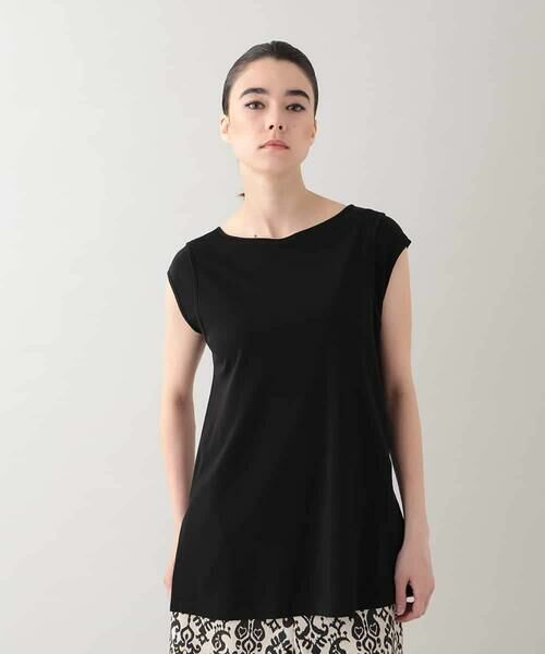 シンプルなデザインでどんなスタイリングにもマッチするひと品。レイヤード風デザインのショルダー部分がお洒落なアクセントをプラスします。腰回りまで隠れる長めの丈感にサイドスリット入りで着合わせしやすいデザイン。季節を問わずロングシーズン活躍するトップスはワードローブに加えておきたいマストなアイテムです。 同素材で仕立てたプルオーバー【RHKHB16270】、 ワンピース【RHPHB16450】、 パンツ【RHQHB16430】【 【RHQHC42260】 、もおすすめ。