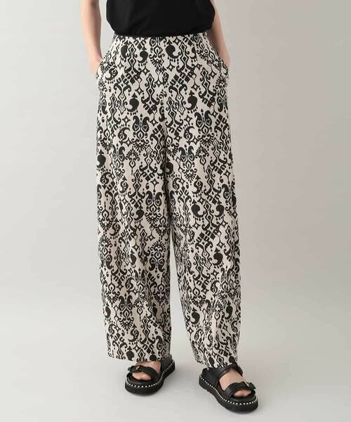 エスニックなダマスク柄プリントが目を惹くデザインパンツ