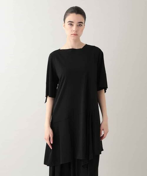 HIROKO KOSHINO / ヒロココシノ チュニック | ドライポンチアシンメトリーチュニック /日本製/洗える(ブラック)