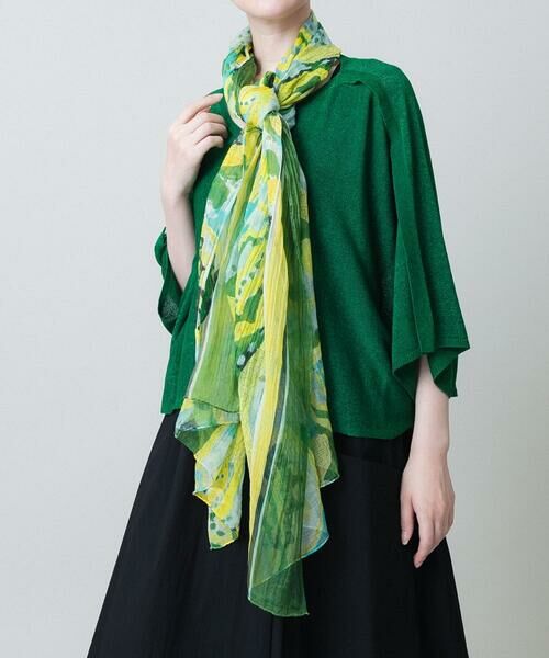 オリジナリティー溢れるアートプリントが目を惹くデザインストール。薄手のコットンシルク素材で仕立てたエアリーな透け感やドレープ性、柔らかな肌触りが魅力です。縦長の大判タイプで巻きアレンジしやすく、持ち運びにも大変便利な軽量仕立て。さらっと一枚取り入れるだけでスタイリングを上品にまとめるおすすめのアイテムです。