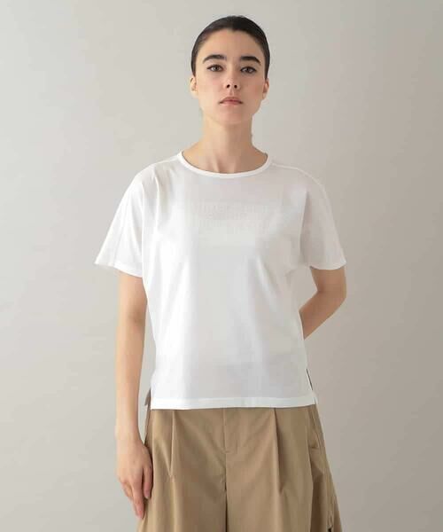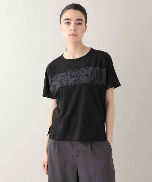 オパールプリントで表現した透かしロゴがポイントのカットソー◆ デザイン・おすすめポイント ◆オリジナルのロゴを帯状に加工したトランクらしいスポーティーなデザイン。ゆったりとした身幅ながらもコンパクトなヘムラインですっきりと着こなせます。落ち感のあるスリーブラインが気になる二の腕をしっかりカバーしてくれるのも魅力的。同シリーズのチュニック【RSKHB14360】 もございます。model:H172 B80 W58 H88 着用サイズ:M◆ 素材 ◆程よいシアー感が涼し気なポリエステル混のテキスタイルを使用。さらりとした生地感で暑い季節にも快適に着用できます。