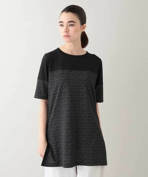オパールプリントで表現した透かしロゴが目を惹くチュニックカットソー◆ デザイン・おすすめポイント ◆オリジナルのロゴ総柄に配色布帛をブロッキングしたトランクらしいスポーティーなデザイン。ゆったりとしたシルエットでリラクシーに着やすく、バストラインの切り替えが自然なスタイルアップを叶えてくれます。ソフトフィットな五分袖が腕周りをすっきり魅せてくれるのも嬉しいポイント。同シリーズのカットソー【RSKHB13330】 もおすすめです。model:H172 B80 W58 H88 着用サイズ:M◆ 素材 ◆程よいシアー感が涼し気なポリエステル混のテキスタイルを使用。さらりとした生地感で暑いシーズンにも快適に着用できます。