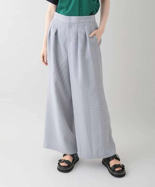 すっきり見えと動きやすさを両立した清涼感溢れるストライプ柄ワイドパンツ◆ デザイン・おすすめポイント ◆暑い季節を快適に過ごせるようデザインされた風通しの良いシルエットとさらりとしたテキスタイルで仕立てた爽やかな一本です。縦のラインを強調する繊細なストライプ柄やウエスト周りのタックディテールがスタイルアップを後押し。リラックス感がありながらもきちんと見えるデザインで、オンオフ問わず楽しめます。model:H170 B77 W58 H85 着用サイズ:M◆ 素材 ◆爽やかな柄、色合いのポリエステルのサッカー素材を使用。表面の凸凹感が夏らしい万能なひと品です。