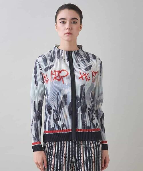 スプレーグラフィックプリントが目を惹く大人の個性派プリーツジャケット