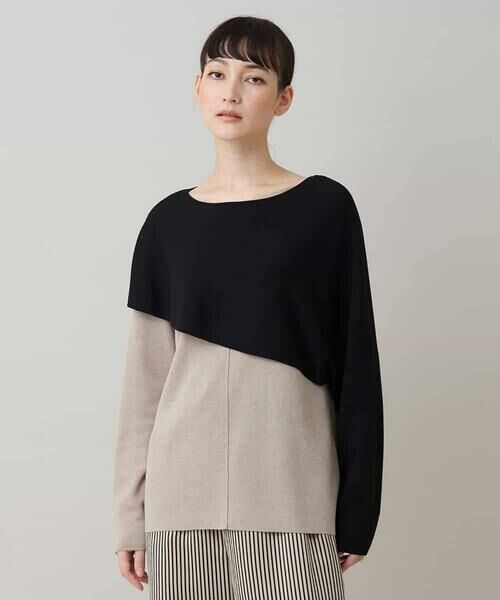 HIROKO KOSHINO / ヒロココシノ ニット・セーター | レイヤード配色ニットプルオーバー(ベージュ)