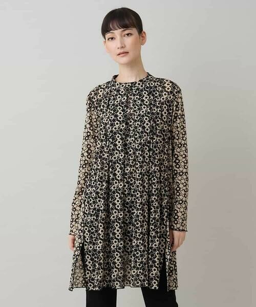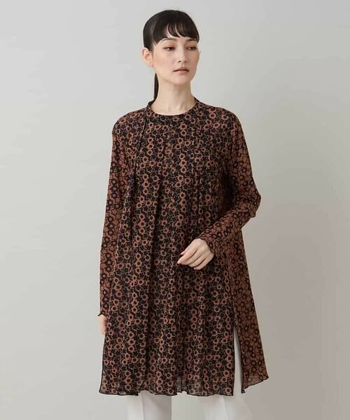 HIROKO KOSHINO / ヒロココシノ チュニック | 小花モチーフプリントチュールチュニック/日本製/洗える(ブラウン)
