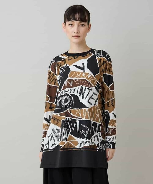 HIROKO KOSHINO / ヒロココシノ チュニック | アートプリントチュニックプルオーバー/日本製/洗える(ベージュ)