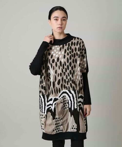 HIROKO KOSHINO / ヒロココシノ チュニック | 膨れジャカードデザインニットチュニック/日本製(ベージュ)