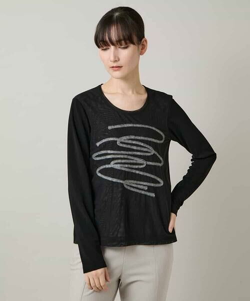 HIROKO KOSHINO / ヒロココシノ カットソー | コード刺繍チュールレイヤーカットソー/日本製/洗える(ブラック)