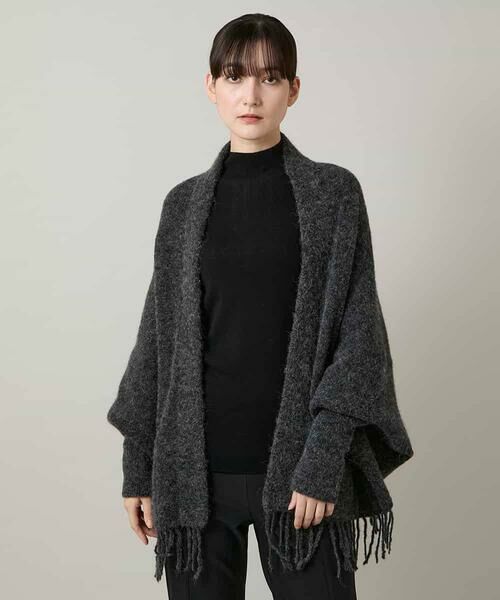寒くなるウィンターシーズンに最適なニットストール。さっと羽織れる袖付きデザインにポケットディテールを加えた暖かな表情が魅力の一枚です。動くたびに上品に揺れる裾フリンジが目を惹くアクセント。ウール混紡のライトな素材で、デイリーに活躍してくれる今季おすすめのアイテムです。