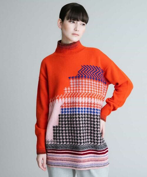 コレクションで登場したニットテキスタイルを落とし込んだこだわりのニットプルオーバー。千鳥とチェック柄をカラーミックスで表現した梅春にぴったりな明るいテキスタイルがポイントになっています。やや長めのチュニック丈なので、細めのパンツと合わせて着こなすのもおすすめ。ネックや袖口の細かな色使いまでこだわった特別な一枚です。model:H170 B77 W58 H85 着用サイズ:M