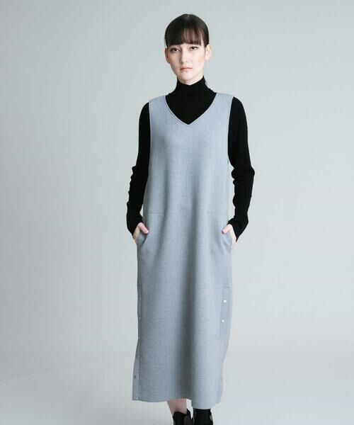 洗練されたシンプルデザインが大人らしい印象のジャンパースカート。両脇裾にドットボタンを配置しているためお好みでシルエットに変化をつけていただけます。柔らかく、スポンジ感のあるダンボール素材を使用しているため着心地の良さも抜群。インに着用するもので印象の変化するジャンパースカートは、着まわし力に優れたおすすめのアイテムです。同じお仕立てのベスト【RSDEP03360】、ジャケット【RSJEP02450】、パンツ【RSLEP01300】もございます。