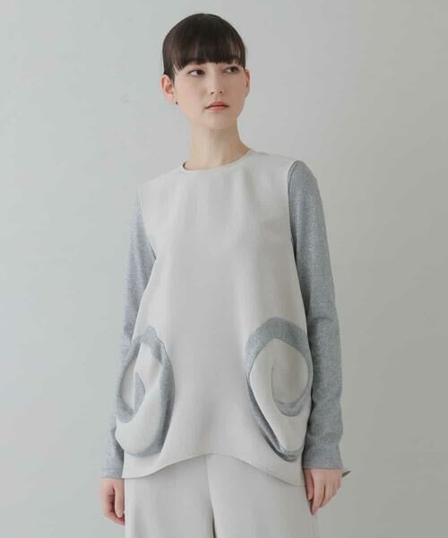 着るだけで周りと差がつく特別なプルオーバーブラウス。脇から前身頃にかけてラメのジャージー生地を切り替えた上品な華やかさがポイントになっています。ぐるっと切り替えた配色は立体的なカッティングを施し、ニュアンスのある動きをプラス。後ろ身頃はウエスト付近に切り替えを入れ、フレアを出したフェミニンな仕上がりになっています。同シリーズでお作りしたカットソー【RHKFP46240】を重ね着するのもおすすめ。ワンピース【RHEFP45780】 もございます。