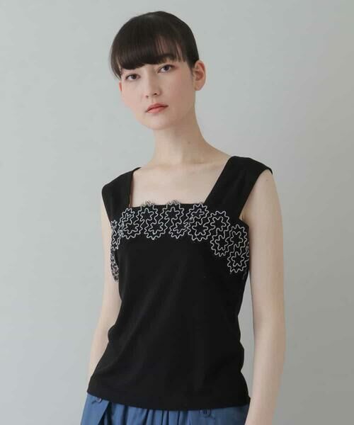 胸元のレースが大人可愛いタンクトップ。ドライポンチ素材を使用したサラッとした肌触りが特徴です。太めのストラップが着やすく、トップスなどレースをポイントにした着こなしが楽しめます。model:H170 B77 W58 H85 着用サイズ:M