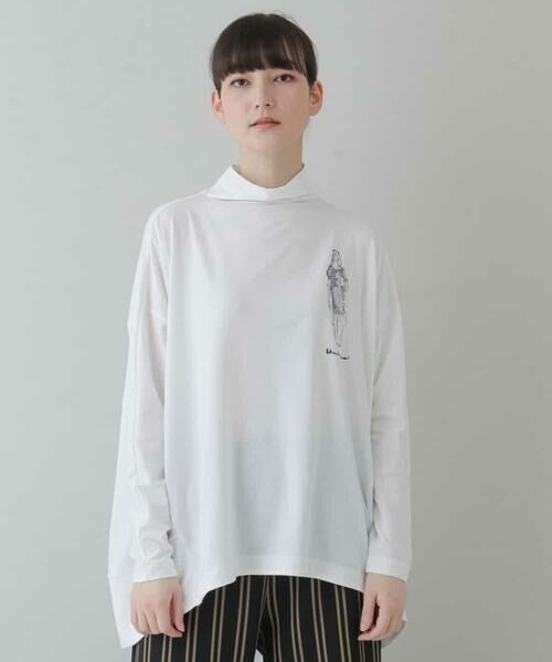 ゆったりリラクシーな着心地が嬉しいカットソー。ヒロココシノが描いたオリジナルイラストにスパンコール刺繍で装飾した価値観のあるデザインになっています。前後差を付けたテールロング仕様で、気になるヒップラインもカバーしてくれる着やすさも魅力。基布はシンプルなベーシックカラーでのお作りなので、どんなボトムにも合わせられます。model:H170 B77 W58 H85 着用サイズ:M