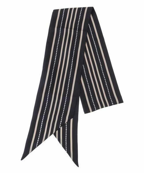 スタイリングをシャープに決めてくれるストライププリントのタイストール。太ステッチの揺らぎ感をプリントで表現した、プレタならではのこだわりのオリジナルパターン。首元にさっと巻いてアクセサリー感覚でお使いいただける、今季おすすめのアイテムです。