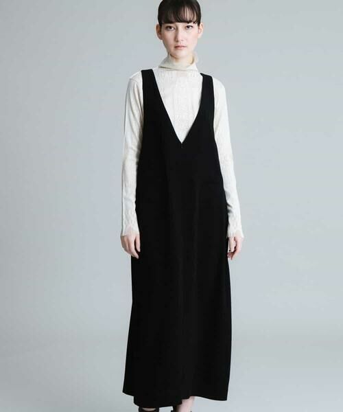 洗練されたシンプルシルエットがプレタらしい、モダンデザインが魅力的なジャンパースカート。深いVカットの襟元で、インに合わせるアイテムによってがらりと印象の変化をつけられます。フロントにはコンシールファスナーを使用することでアクセントをつけながら、大人らしい上品さで仕上げました。合わせるアイテムによって、デイリーからちょっとしたお出かけまでお使いいただけるアイテムです。model:H170 B77 W58 H85 着用サイズ:M