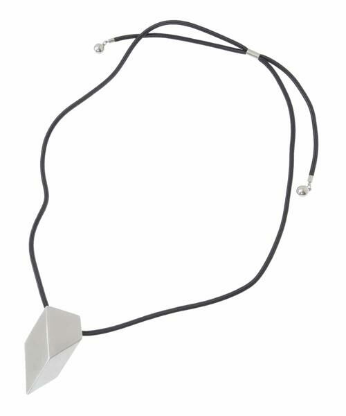 彫刻のようなモダンなフォルムのメタルトップが目を引く、他にはないデザインのペンダント。大きめモチーフなのでコーディネートに埋もれず、個性的なアクセントをプラスしてくれる一品です。レングスフリーのコード仕様でスタイリングの胸元にぴったり合わせていただけるのもポイント。ワンランク上のスタイリングを叶えてくれるアイテムです。