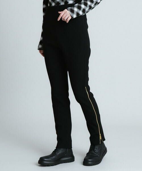 ソフトフィットで軽い着心地と表面感のあるポリエステル生地を使用したストレートパンツ。シンプルな中にもこだわりを感じるエッジを効かせたサイドのメタルジップがポイントになっています。きれいなストレートシルエットなので、ボリュームニットやチュニック丈のトップス、トレンドのジレと合わせたメリハリのあるコーディネートがおすすめ。※サイドジップmodel:H170 B77 W58 H85 着用サイズ:M