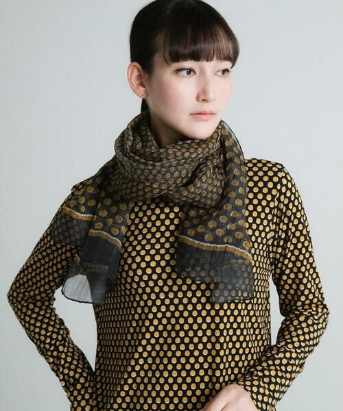 ウェアと同柄のドットプリントがチャーミングなデザインストール。コットンとシルクをブレンドしたしなやかで柔らかな上質素材で仕立てた春らしい風合いも魅力的です。鮮やかなカラーやスモーキーなお色味パターンがエレガントなアクセントストールはコートやジャケットインで覗かせたいおすすめのアイテムです。