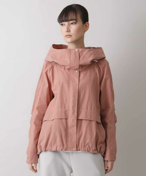 春らしい風合いのタンブラー素材で仕立てた表面感のあるふんわり感が魅力的なデザインパーカー。大きく抜けた衿ぐりや裾の内側にドロストを入れてよりボリュームのあるシルエットにアレンジが可能です。大きく前後差をつけたヘムラインはボトムを選ばずスタイリングしやすいのも嬉しいポイント。フロントを開けると白のファスナーや裏のパイピングが覗くスポーティーで優しい雰囲気の一枚です。model:H170 B77 W58 H85 着用サイズ:M