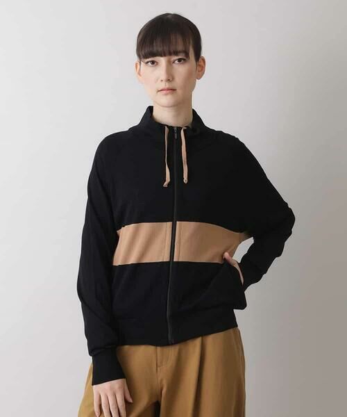すっきりとスポーティーな印象のバイカラーデザインが特徴のジップアップカーディガン。胸のラインは袖下に繋がるように計算されたスタイリッシュなデザインになっています。首元のスタンドカラーは紐調節で絞りを入れたアレンジが可能。薄手ででシャープなシルエットながらラグランシルエットのゆとりあるフォルムで重ね着も楽しめます。同じシリーズのプルオーバー【RSFES02300】もおすすめのアイテムです。model:H170 B77 W58 H85 着用サイズ:M