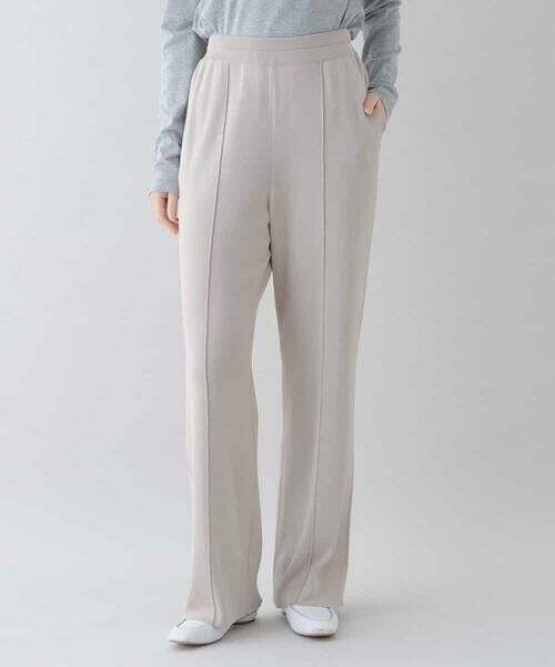 ヒロココシノオリジナルの糸を使用した光沢感のある上品なニットで仕立てたワイドパンツ。ドレープのあるしなやかで優しい穿き心地ながら膝が出たり変形するのを予防できる上質素材なのも嬉しいポイントです。センタープレスの代わりに極細のピンタックを施してより美シルエットに。ベージュとネイビーの上品なカラー展開でセットアップでの着こなしがエレガントでフォーマルなシーンでも合わせて頂けるアイテムです。同素材のベスト【RHSFS11590】やカーディガン【RHSFS10590】もおすすめ。 ※自然光・照明の関係、パソコン・スマートフォンなどの環境により、実際と色味が違って見える場合がございます。予めご了承ください。商品の色味は、詳細画像をご参照ください。 ※サンプルでの撮影となるため、実際にお届けする商品と仕様やサイズが異なる場合がございます。 model:H170 B77 W58 H101 着用サイズ:M