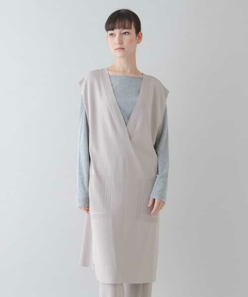 ヒロココシノオリジナルの糸を使用した光沢感のある上品なニットで仕立てたニットジレ。ドレープのあるしなやかで優しい着用感と落ち感のあるシャープなシルエットが魅力的です。ポケットのフォルムを編み地の変化で表現した細やかなディテールがさりげないポインント。上品なカラー展開でフォーマルなシーンでも合わせて頂けるアイテムです。同素材のパンツ【RHGFS12490】と合わせたエレガントなセットアップがおすすめ。カーディガン【RHSFS10590】とも好相性です。