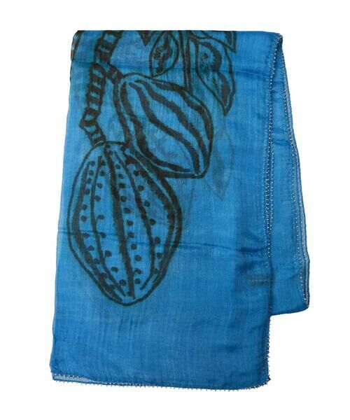 ソフトタッチなコットンシルク素材で仕立てたオリジナルストール。コレクションから採用したMANGO柄をアートタッチに描いた個性あるデザインがポイントです。縁のラインにはシルバービーズをあしらった繊細なディテールがさりげないアクセント。同色系のプリントなので無地感覚で使えてコーディネートに合わせやすいおすすめの一枚です。