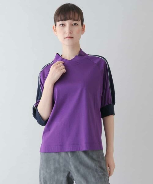 さらりと滑らかな質感でラフに着用いただけるカットソー素材で仕立てたプルオーバー。ラグランシルエットにソフトなボリュームを付けたパフスリーブとショルダーラインや袖口のアクセント配色がポイントになっています。テールロングシルエットでボトムを選ばず合わせて頂けるスポーティーカジュアルな一枚です。model:H169 B78 W58 H88 着用サイズ:M