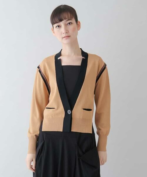 トレンド感のあるコンパクトなフォルムに配色アクセントを施したニットカーディガン。滑らかで柔らかいのにしっかりと高級感のある上質ニットで仕立てた大人のニットになっています。刻みの入った襟や袋布を配色にしたポケット、二色使いでアクセントをつけたアームホールがポイントに。サイドスリット入りのショート丈なのでバランスの良いスタイリングを叶えてくれるおすすめのアイテムです。
