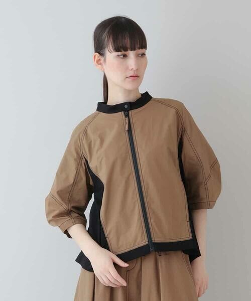 さっぱりとしたハリ感のあるタイプライター生地で仕立てたバイカラーデザインの前開きブラウス。立体的な曲線のフェミニンフォルムのお袖が華奢見えしつつも印象的なポイントになっています。スポーティーなステッチを効かせ、カットソー素材をジョイントしたテールロングのトレンド感あるシルエットもアクセントに。同じテキスタイルで仕立てたボトム【RSHFU61390】【RSHFU66360】共にセットアップで合わせて頂けます。ドット柄【RSBFU60440】もおすすめです。