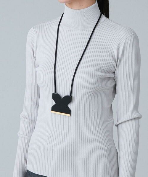 存在感のある大きめのデザイントップが印象的なオリジナルペンダント。メタルバーをアクセントにしたモチーフは K の文字を横にしたブランドロゴをさりげなく表現しています。光沢感のあるコードはスライド調節が可能なのでスタイリングに合わせてアレンジが可能。クールモダンでおしゃれなポイントになるおすすめのアクセサリーです。※アクセサリーパーツ・部品などの金属部分に鉛が含まれている場合があります。小さなお子様が口に入れたり誤って飲み込んだりしないように、使用や保管の際は厳重にご注意ください。