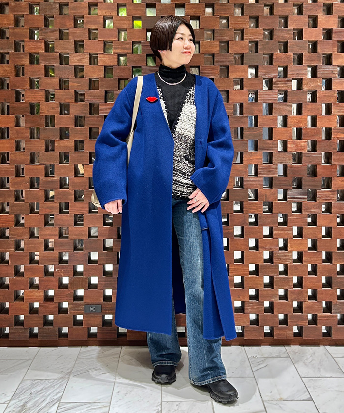 大きくフォルムを感じさせる立体的な袖とシルエットは、ミニマルですが存在感のあるコートです。
