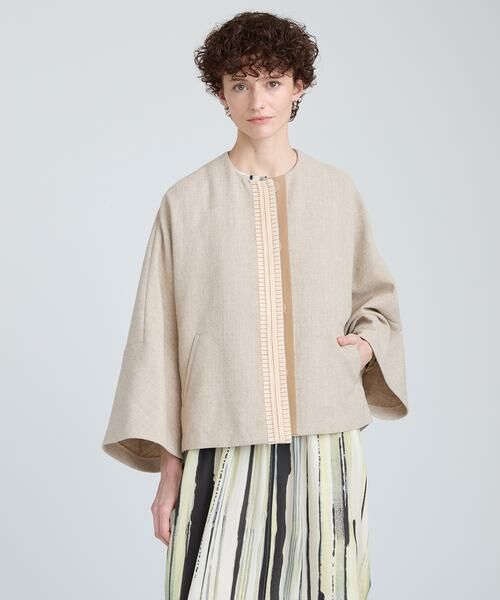 ドルマンスリーブの緩さがカーディガン感覚で、春の立ち上がりに軽く羽織れるアウターとして活躍します。