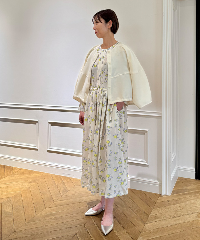 フラワーモチーフのカットジャカードワンピース。