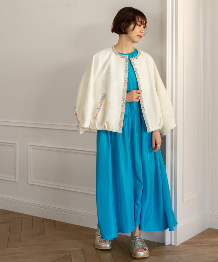 贅沢にシルク素材をたっぷりと使用したワンピース。