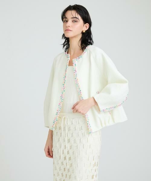 インポート糸を使用したマルチカラーのブレードがポイントになり、一味違うツイードジャケットに。