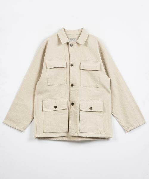 シンプルなボディにハンドクロシェットをたたきつけたフィールドジャケット。インドの職人による手仕事を現代的なデザインで表現したアイテムです。